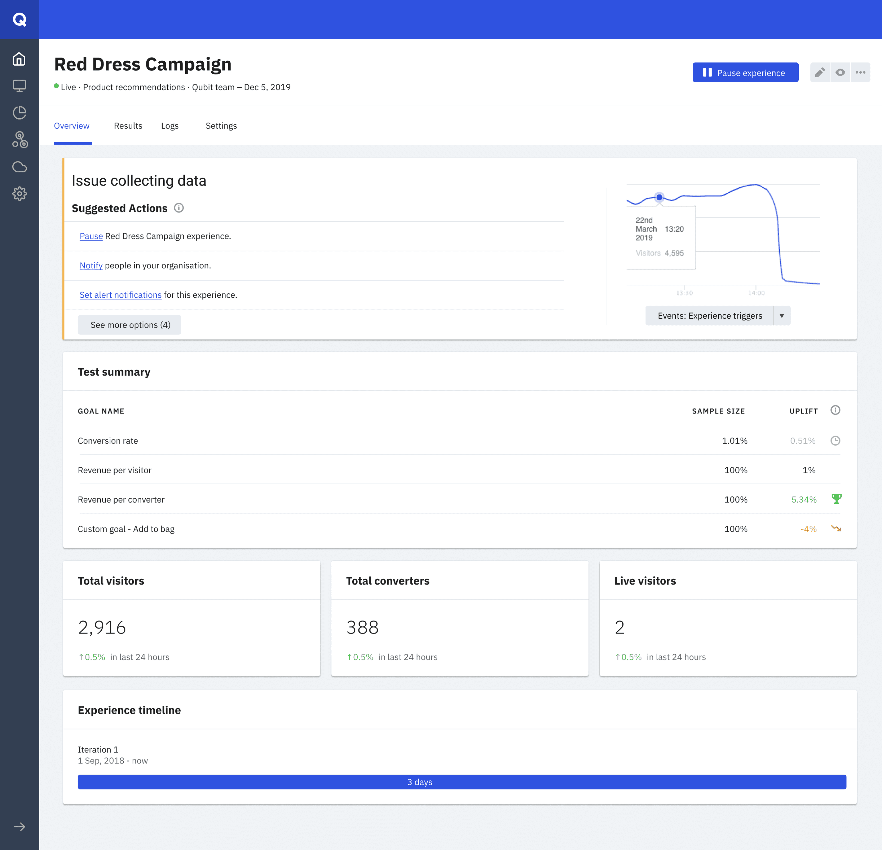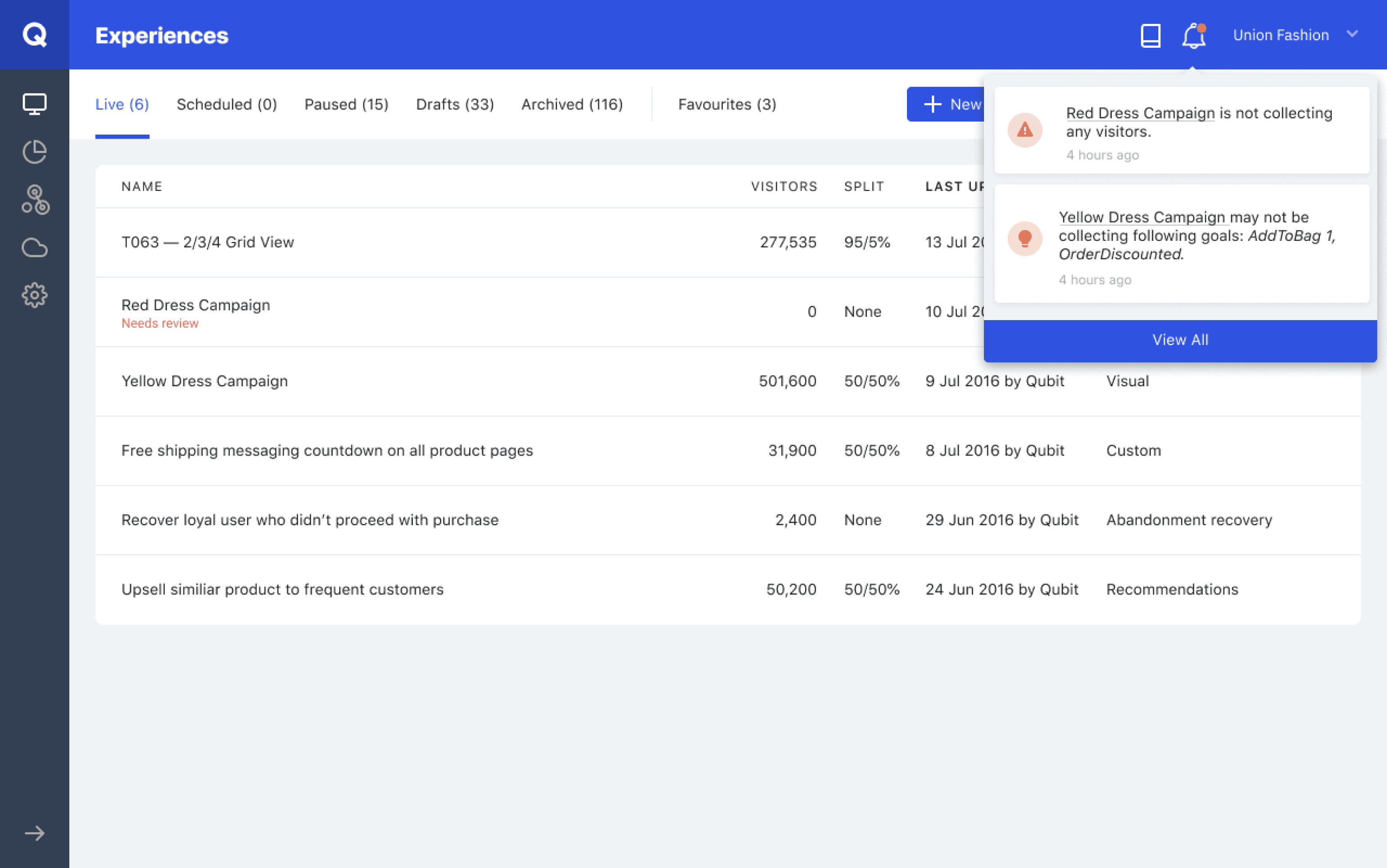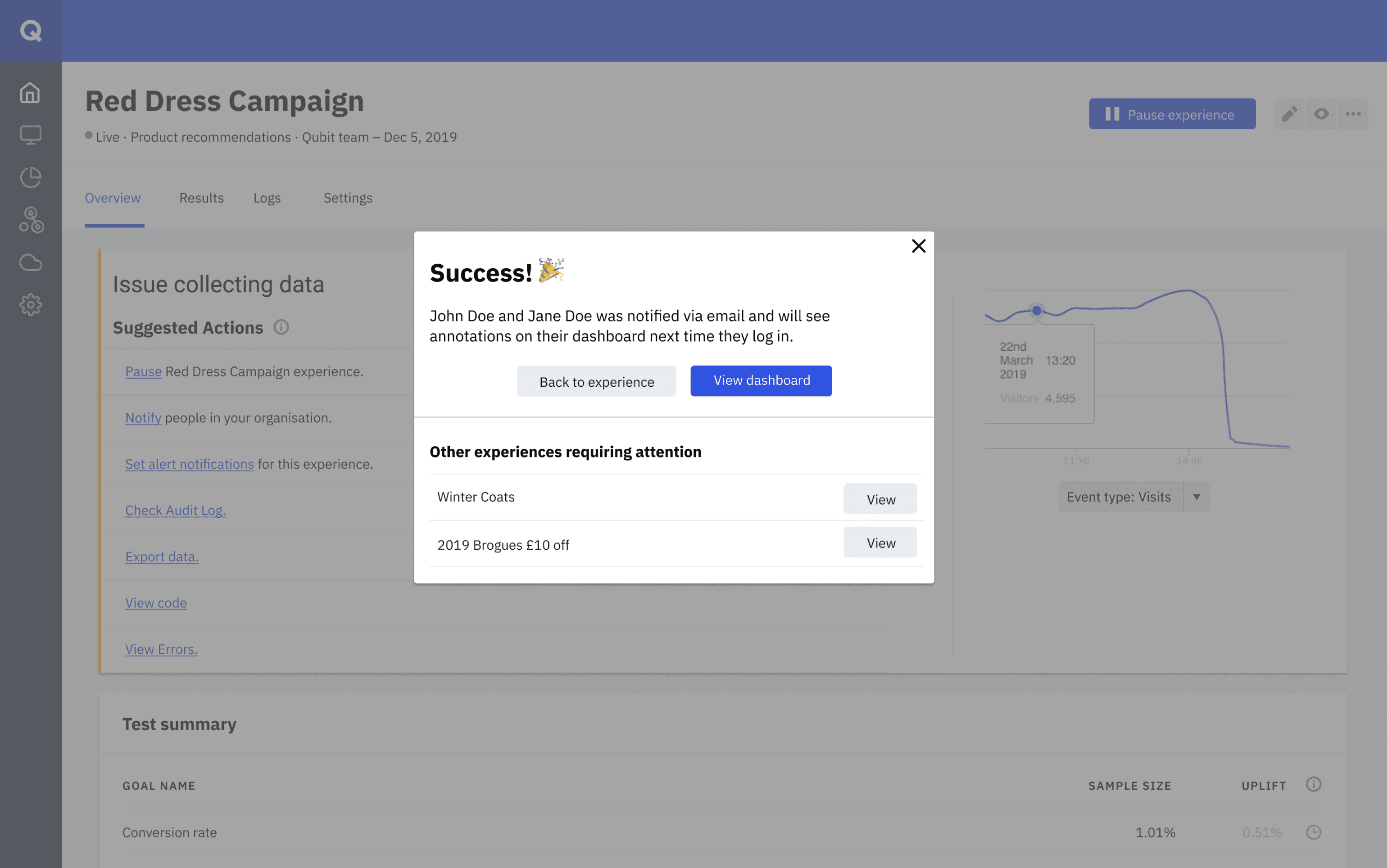 Our assumption was alerting the user whenever their experiences were failing or not generating revenue and providing them with every data we have would definitely have a positive impact on the value they get from Qubit.